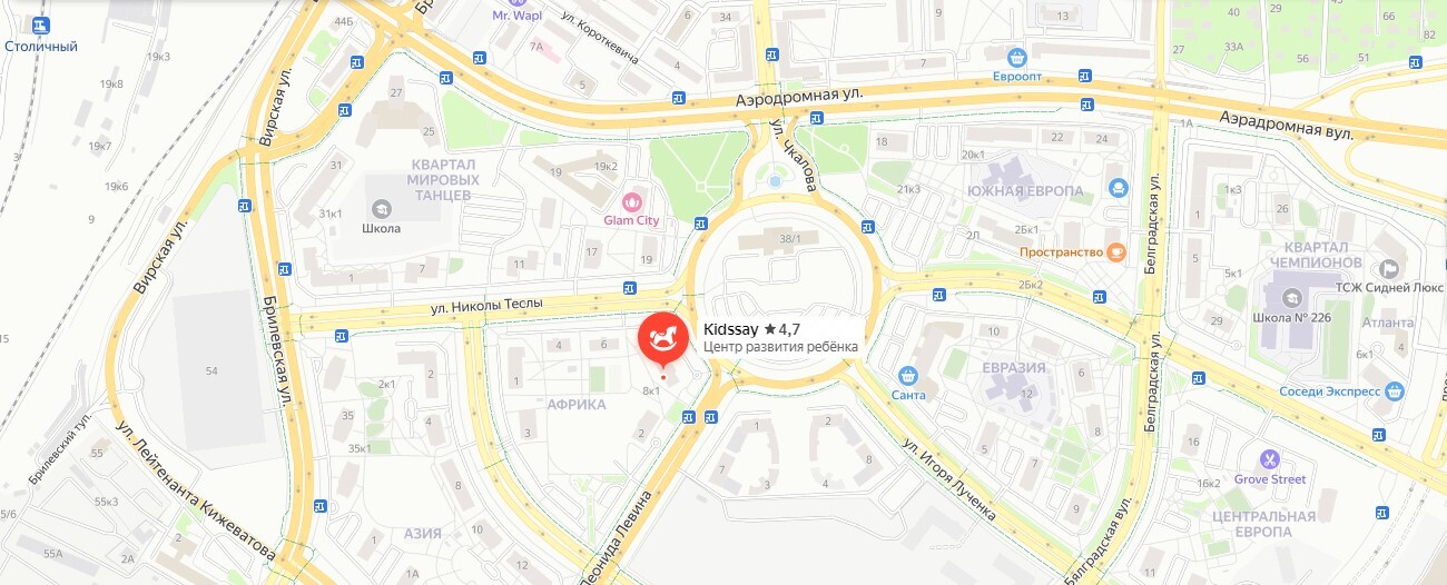 Мы находимся в Минск-Мире на улице Николы Теслы,8. Наш вход со стороны детской площадки. К нам удобно добираться с любого района Минска